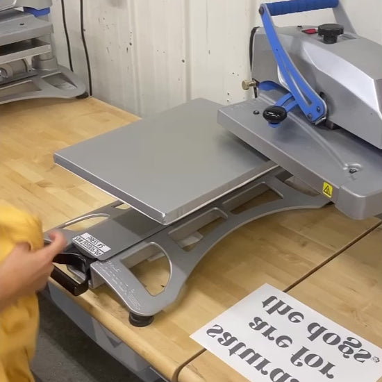 We use Hotronix Fusion IQ 16 X 20 Heat Presses. Each press will vary, we reccommend testing these as a starting point. Our press settings are: