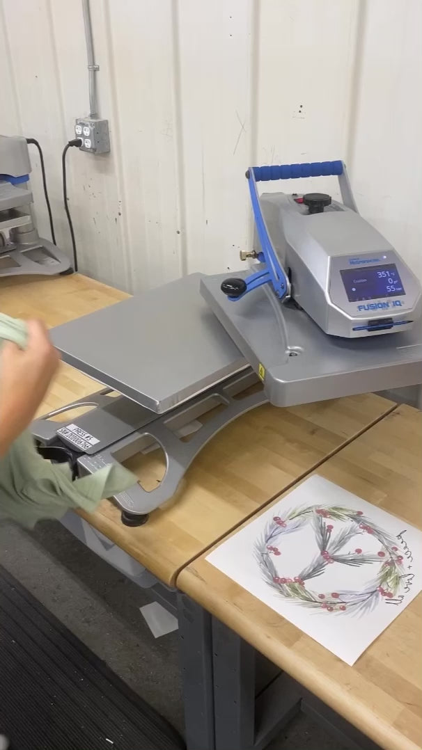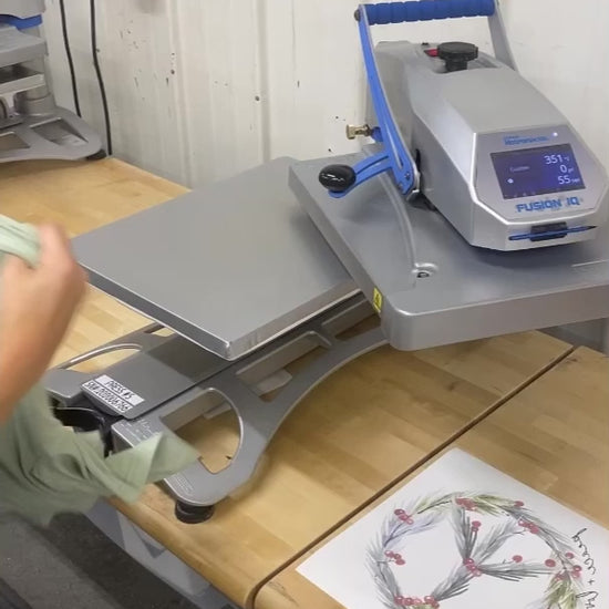 We use Hotronix Fusion IQ 16 X 20 Heat Presses. Each press will vary, we reccommend testing these as a starting point. Our press settings are: